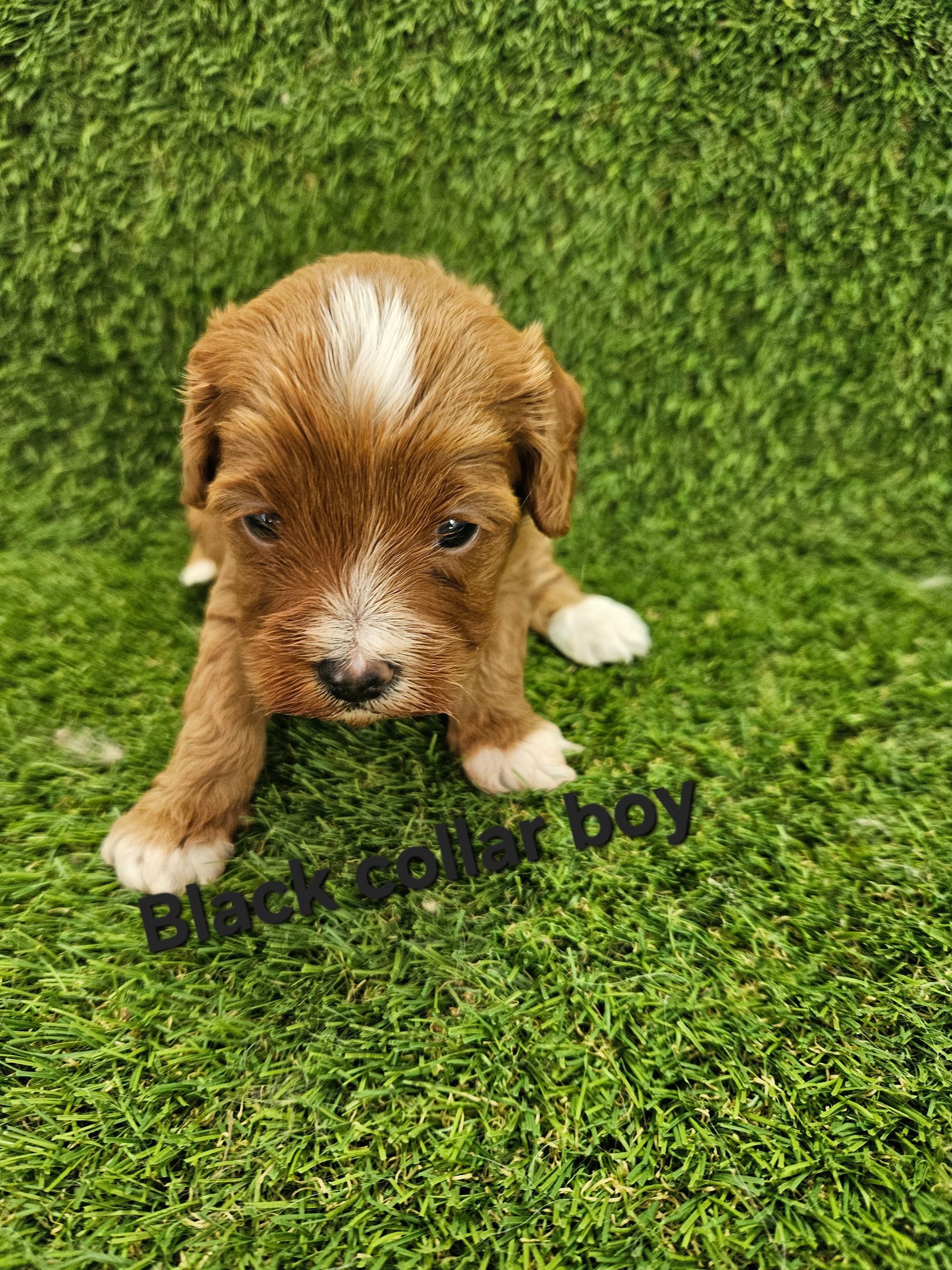 Our gorgeous little Ginger is one of our home bred Cavoodles, making these puppies F1B puppies (75% Poodle, 25% Cavalier). They will weigh about 5-7kg when fully grown. They will grow into Intelligent, loving and very loyal little companions.
